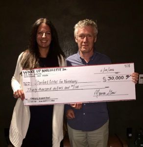 On November 8, 2016, Wake Up Narcolepsy Board Member, Suzanne Rispoli had the honor of presenting Dr. Emmanuel Mignot, MD, PhD, Director of the Stanford Center for Sleep Sciences and Medicine at Stanford University with a $30,000 unrestricted grant to continue their work with a Genome Wide Association Study which will help identify possible existing risk associations and genetic associations that may predispose patients to Narcolepsy.