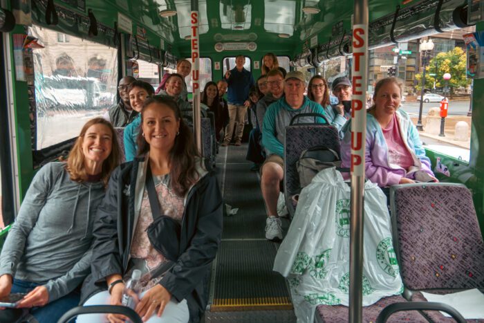 Left: Dr. Morse’s interactive workshop; Right: WUN support group leaders on a trolley tour of Boston